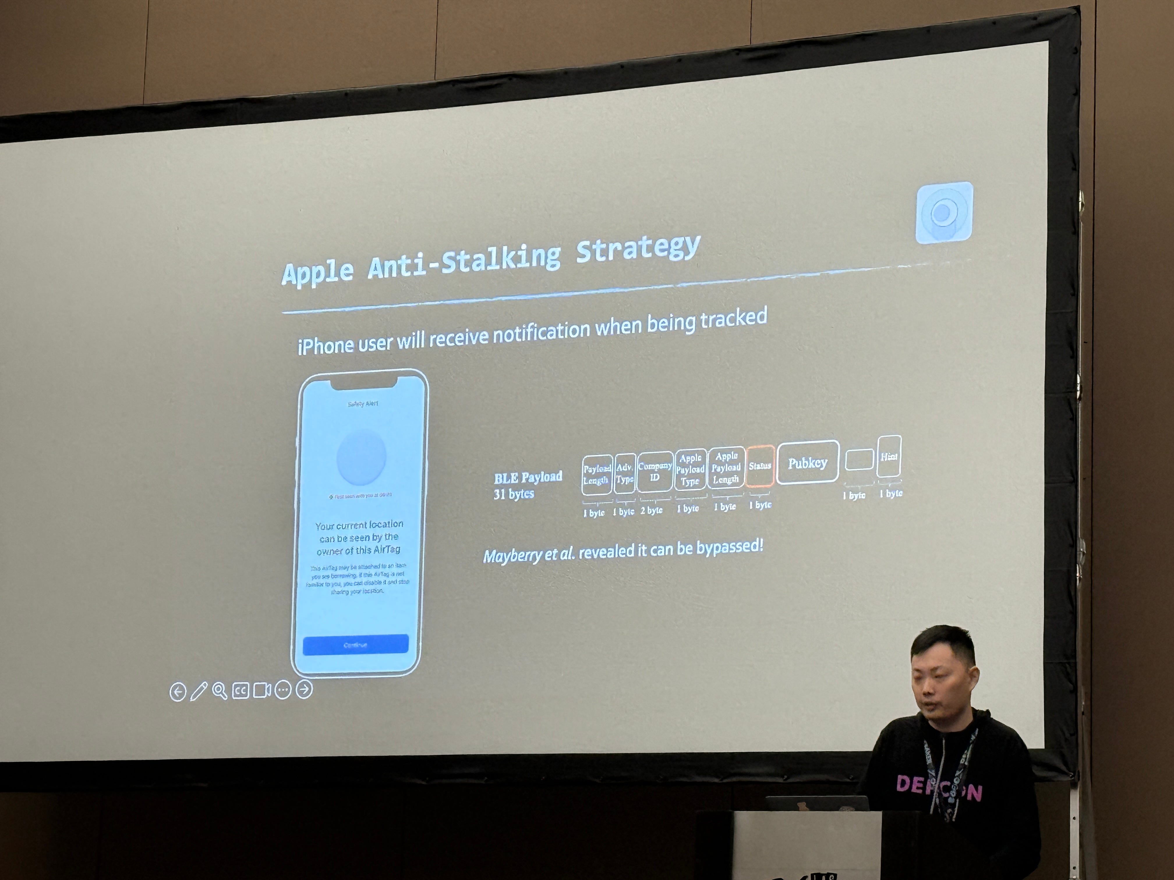 Junming “Chapoly1305” Chen gave a talk about how to exploit the Airtag interface.