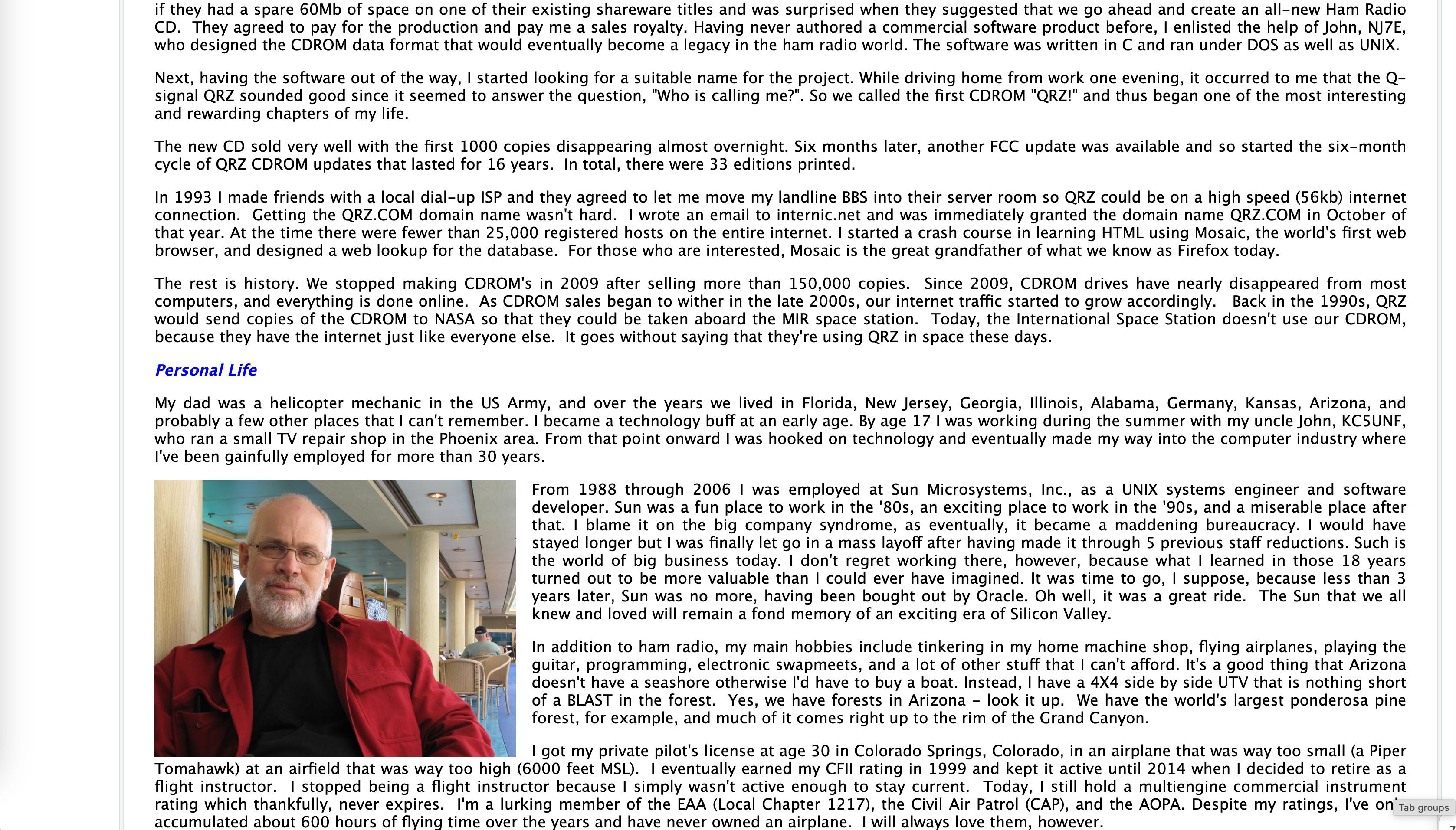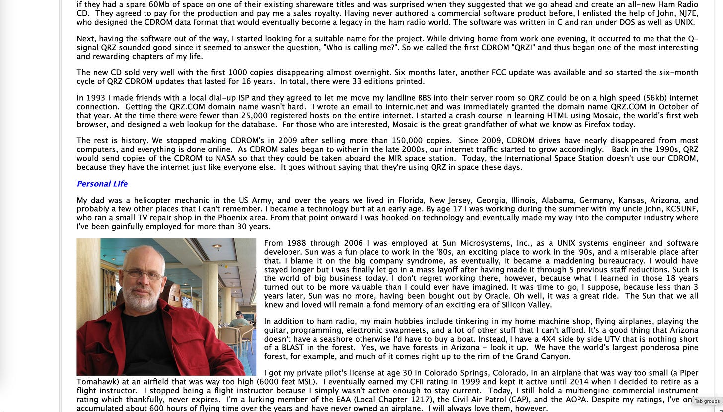 For example, the founder of QRZ is Fred LLoyd, with the callsign of AA7BQ. Searching by that on his page yields his personal site