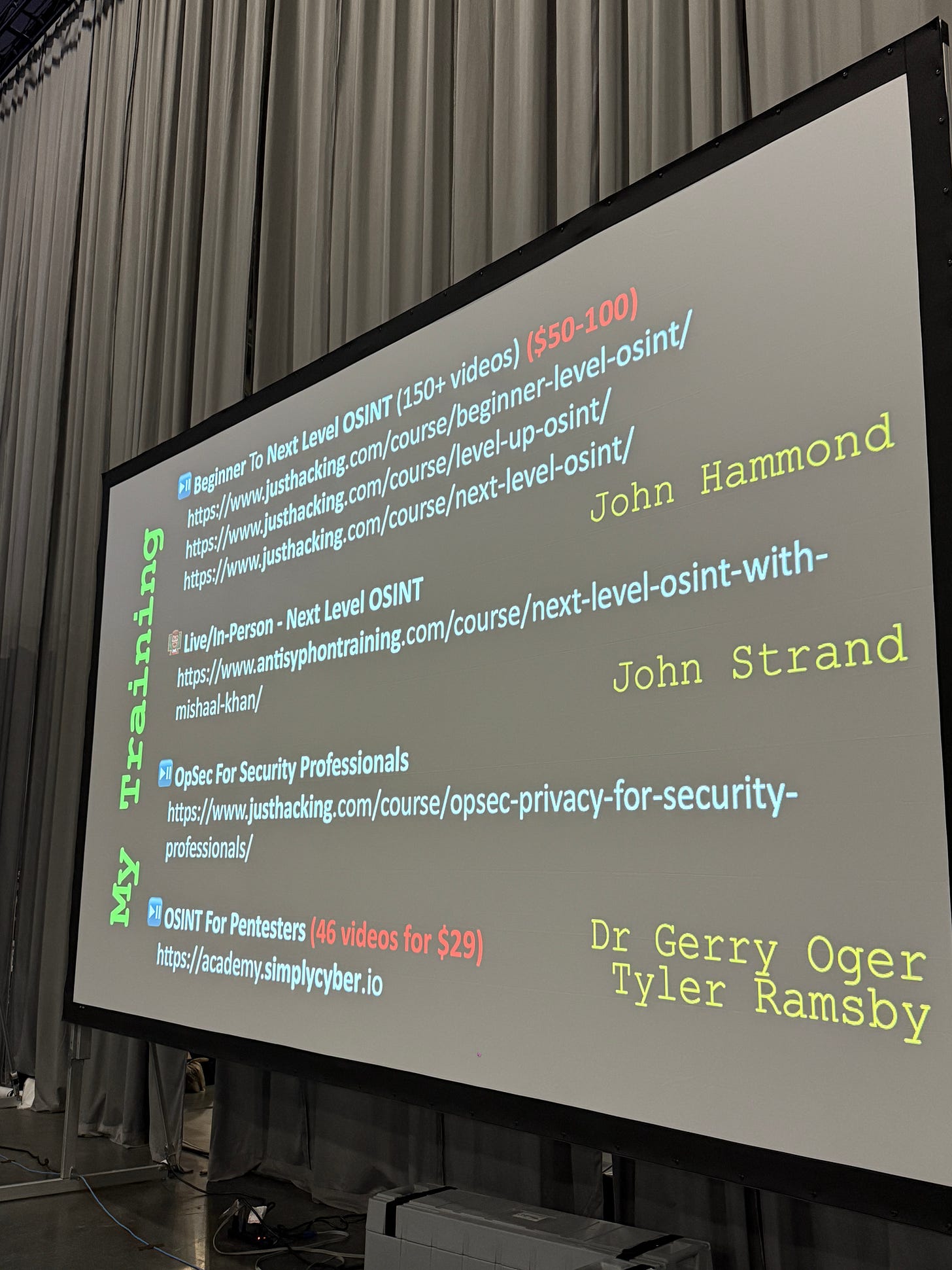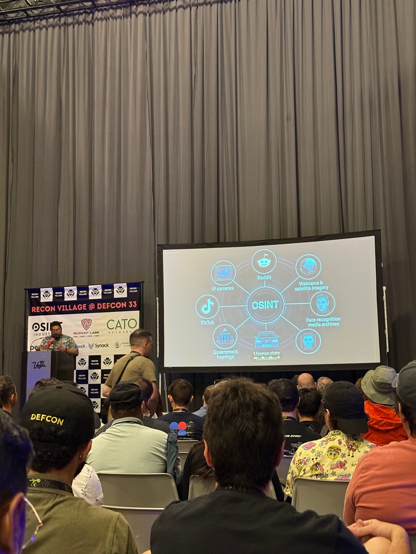 Went over to the red team village to learn more about OSINT techniques for practical online investigations and threat hunting.