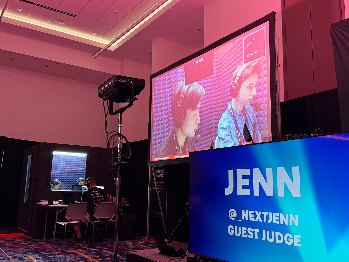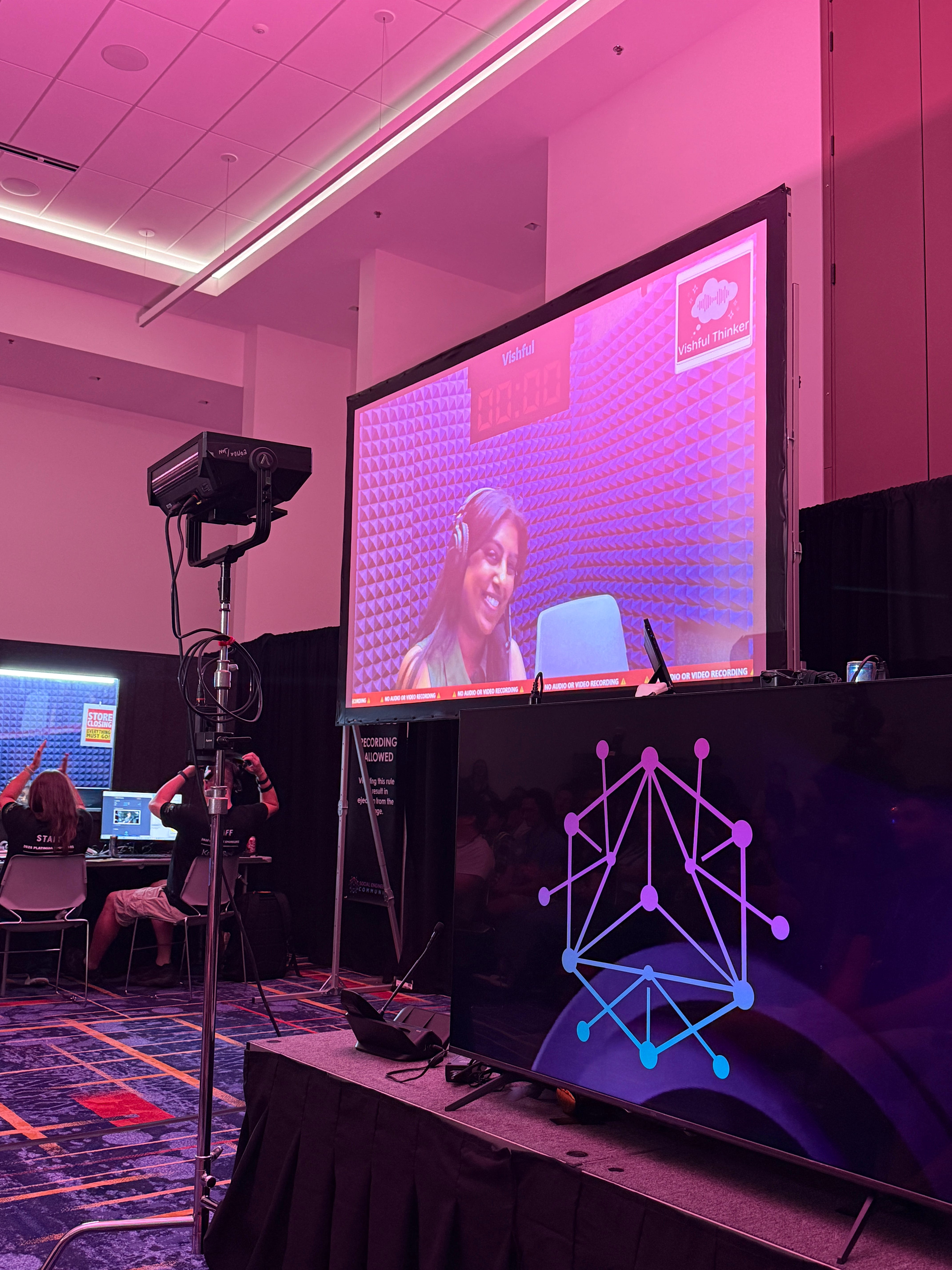 A bit on the background of the competition - competitors are inside a phone booth mic-ed up so that all 200+ attendees in the audience can listen to the call. In order to obtain points in the CTF, they have to get their target to provide answers to questions like