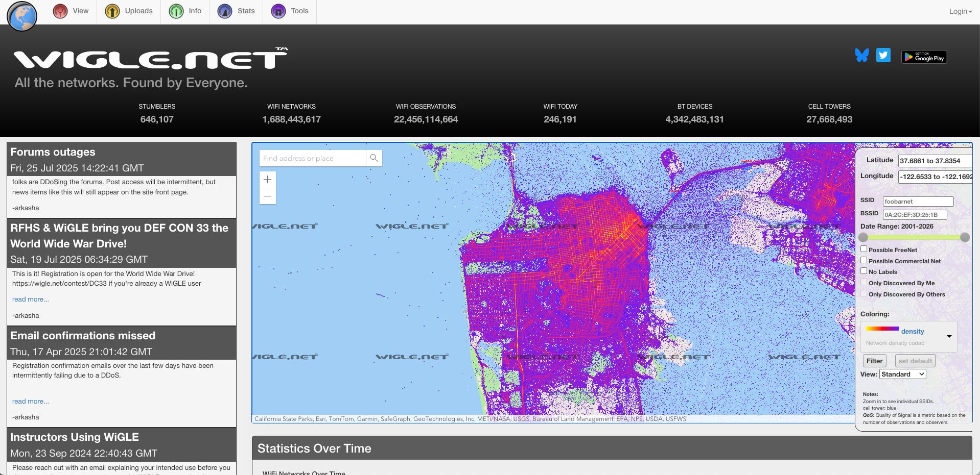 Using wigle.net, we can see an open list of WiFi networks out there in the world, and with knowing the list of networks that the High Value Individual (HVI) has connected to before, we could spoof an existing WiFI network based on the geolocation.